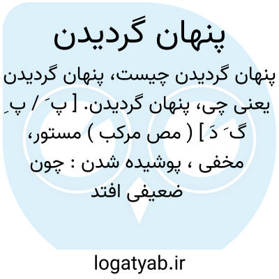 پنهان گردیدن. [ پ َ / پ ِ گ َ دَ ] ( مص مرکب ) مستور، مخفی، پوشیده شدن: چون ضعیفی افتد میان دو قوی... معایب و مثالب ظاهرگردد و محاسن و مناقب پنهان گردد. ( تاریخ بیهقی ).