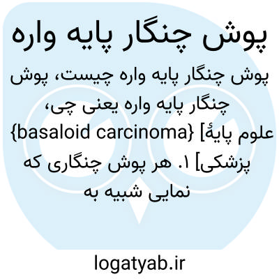 {basaloid carcinoma} [علوم پایۀ پزشکی] 1. هر پوش چنگاری که نمایی شبیه به پوش چنگار یاخته های پایه داشته باشد 2. پوش چنگار نادر یاخته های مقعد که شبیه به پوش چنگار یاخته های پایۀ پوست است