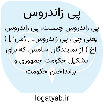 پی زاندروس. [ رُس ْ ] ( اِخ ) از نمایندگان سامس که برای تشکیل حکومت جمهوری و برانداختن حکومت ملی و وارد ساختن آلکبیادس به آتن، بدین شهر رفته بود. وی معاصربا داریوش دوم پادشاه هخامنشی است. رجوع به ایران باستان ج 2 ص 972 و 973 و 976 و رجوع به پیساندر شود.