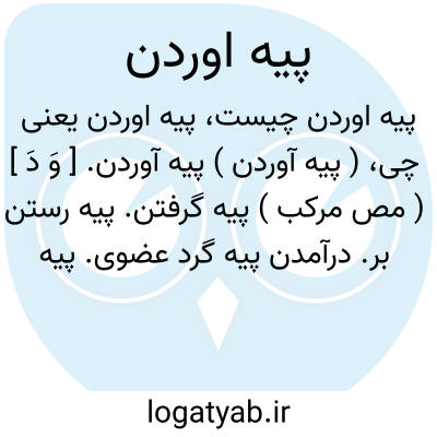 ( پیه آوردن ) پیه آوردن. [ وَ دَ ] ( مص مرکب ) پیه گرفتن. پیه رستن بر. درآمدن پیه گرد عضوی. پیه ناک شدن عضو حیوان یا آدمی. || نابینا شدن:
