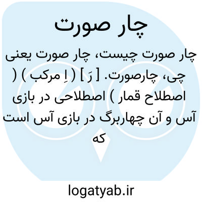 چارصورت. [ رَ ] ( اِ مرکب ) ( اصطلاح قمار ) اصطلاحی در بازی آس و آن چهاربرگ در بازی آس است که دو برگ آن تصویر شاه و دو برگ تصویر بی بی باشد. دو شاه و دو بی بی. شاه جور بی بی.