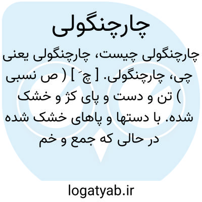 چارچنگولی. [ چ َ ] ( ص نسبی ) تن و دست و پای کژ و خشک شده. با دستها و پاهای خشک شده در حالی که جمع و خم شده باشد. با دست و پای جمع شده و شخ مانده چنانکه مرده ای یامغشی ٌ علیهی. خشک مانده با دستها و پاهای بسوی تنه گرد آمده چون مبتلا بفالجی یا از سرمازدگی مرده ای و غیره. || در تداول عامه با تمام بدن متشنج و خشک. گردآمدن ناموزون اعضای تن خفته ومصروع و مرده ( با فعل «ماندن » و «شدن » صرف شود ).