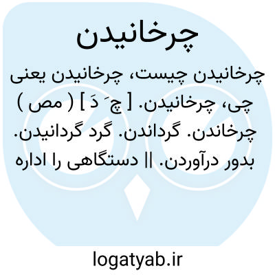 چرخانیدن. [ چ َ دَ ] ( مص ) چرخاندن. گرداندن. گرد گردانیدن. بدور درآوردن. || دستگاهی را اداره کردن. اداره یا ملک یا کارخانه ای را دایر داشتن. اداره کردن. رجوع به چرخاندن شود.