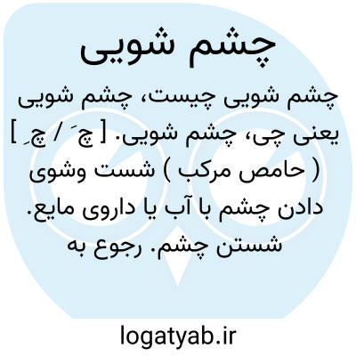 چشم شویی. [ چ َ / چ ِ ] ( حامص مرکب ) شست وشوی دادن چشم با آب یا داروی مایع. شستن چشم. رجوع به چشم شوی شود. || ( اِ مرکب ) در تداول عوام، ظرف چشم شویی را هم گویند. رج-وع به چشم شوی شود.