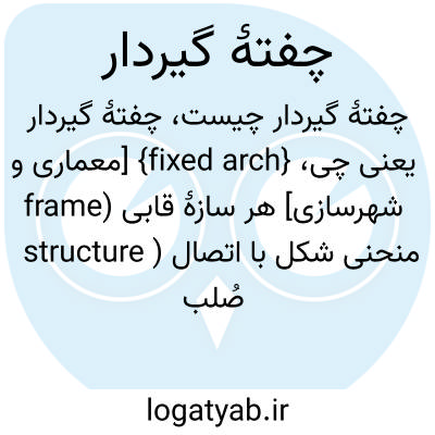 فرهنگستان زبان و ادب {fixed arch} [معماری و شهرسازی] هر سازۀ قابی (frame structure ) منحنی شکل با اتصال صُلب