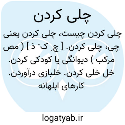 چلی کردن. [ چ ِ ک َ دَ ] ( مص مرکب ) دیوانگی یا کودکی کردن. خل خلی کردن. خلبازی درآوردن. کارهای ابلهانه و سفیهانه کردن. و رجوع به چلی شود.