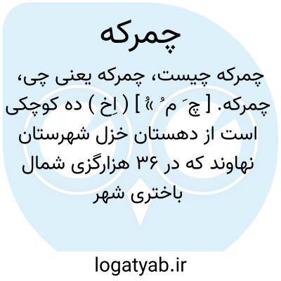 چمرکه. [ چ َ م ُ »ُ ] ( اِخ ) ده کوچکی است از دهستان خزل شهرستان نهاوند که در 36 هزارگزی شمال باختری شهر نهاوند، کنار راه مالرو گورنصب به داریاب واقع است و 25 تن سکنه دارد. ( از فرهنگ جغرافیایی ایران ج 5 ).