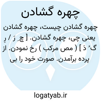 چهره گشادن. [ چ ِ رَ / رِ گ ُ دَ ] ( مص مرکب ) رخ نمودن. از پرده برآمدن. صورت خود را بی حجاب آشکار ساختن. جلوه کردن. آشکار شدن. نمودار شدن. جلوه فروختن: