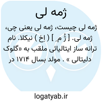 ژمه لی. [ ژُ م ِ ] ( اِخ ) نیکلا. نام ترانه ساز ایتالیائی ملقب به «گلوک دلیتالی ». مولد بسال 1714 در آورسا و وفات بسال 1774 م.