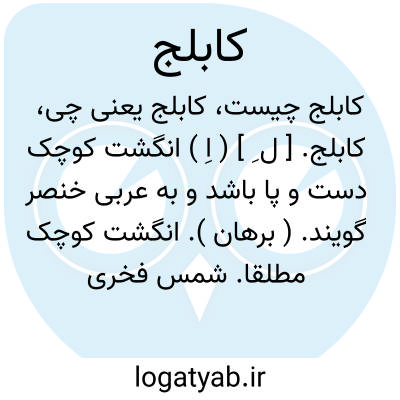 کابلج. [ ل ِ ] ( اِ ) انگشت کوچک دست و پا باشد و به عربی خنصر گویند. ( برهان ). انگشت کوچک مطلقا. شمس فخری بمعنی انگشت کوچک دست آورده و گفته: