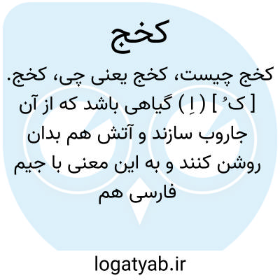 کخج. [ ک ُ ] ( اِ ) گیاهی باشد که از آن جاروب سازند و آتش هم بدان روشن کنند و به این معنی با جیم فارسی هم آمده است. ( برهان ). گیاهی که بدان زمین و فرش خانه را روبند و آتش نیز به آن افروزند. ( آنندراج ) ( انجمن آرای ناصری ). کخچ. ( از برهان ) ( ناظم الاطباء ). علف جارو. خلنگ. ( فرهنگ فارسی معین ):