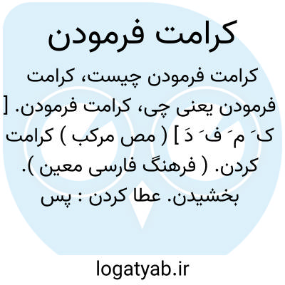 کرامت فرمودن. [ ک َ م َ ف َ دَ ] ( مص مرکب ) کرامت کردن. ( فرهنگ فارسی معین ). بخشیدن. عطا کردن: پس صلات و صدقات به مستحقان کرامت فرمود. ( ظفرنامه یزدی چ امیر کبیر ص 364 ). || قبول نمودن. ( ناظم الاطباء ). رجوع به کرامت کردن و کرامت شود.