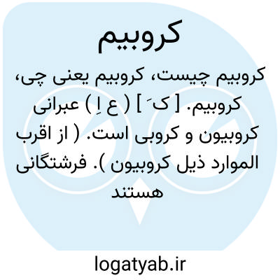 کروبیم. [ ک َ ] ( ع اِ ) عبرانی کروبیون و کروبی است. ( از اقرب الموارد ذیل کروبیون ). فرشتگانی هستند که از حضور خدا فرستاده می شوند یا اینکه همواره در حضورش حاضر می باشند و چنانکه گفته شده است ایشان دارای دو بال هستند. ( قاموس کتاب مقدس ). رجوع به کروبیون و کروبیان شود.