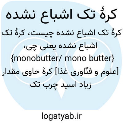 {monobutter/ mono butter} [علوم و فنّاوری غذا] کرۀ حاوی مقدار زیاد اسید چرب تک اشباع نشده و مقدار کمی اسیدهای چرب اشباع شده