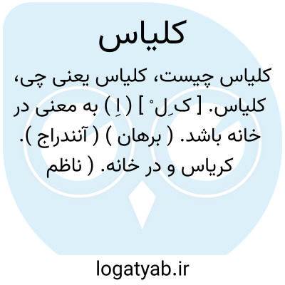 کلیاس. [ ک ِل ْ ] ( اِ ) به معنی در خانه باشد. ( برهان ) ( آنندراج ). کریاس و در خانه. ( ناظم الاطباء ). در خانه. ( فرهنگ فارسی معین ). || ادبخانه را نیز گویند که بر بام خانه سازند و آن را به عربی کریاس خوانند. ( برهان ) ( آنندراج ). مستراحی که بر بالای بام سازند و کاریز آن بر زمین باشد. ( فرهنگ فارسی معین ). طهارت خانه که بر بام راست کنند و به تازی کریاس خوانند. ( فرهنگ رشیدی ).