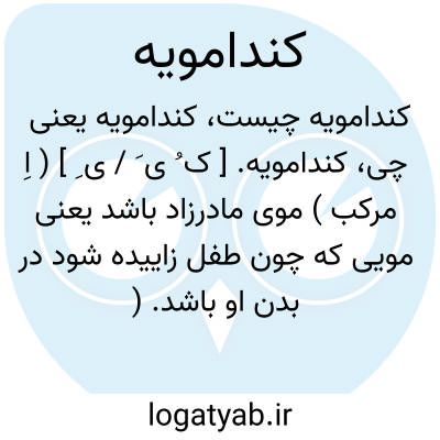 کندامویه. [ ک ُ ی َ / ی ِ ] ( اِ مرکب ) موی مادرزاد باشد یعنی مویی که چون طفل زاییده شود در بدن او باشد. ( برهان ) ( آنندراج ). مویی که چون طفل بزاید بر بدن او باشد. ( فرهنگ رشیدی ) ( از انجمن آرا ). موهایی که چون طفل زاییده شود در بدن وی باشد. ( ناظم الاطباء ): تزغیب؛ با کندامویه شدن. زغاب؛ کندامویه برآوردن. ( تاج المصادر بیهقی از یادداشت به خط مرحوم دهخدا ). زغب. زغابه. ( یادداشت به خط مرحوم دهخدا ). || پرهای زردرنگ خردی که در بدن چوزه مرغ است. ( ناظم الاطباء ).