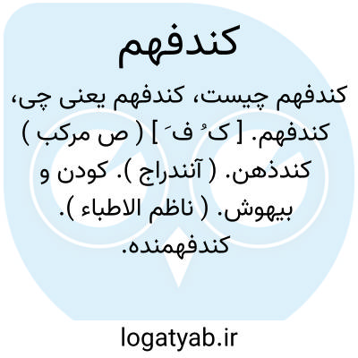 کندفهم. [ ک ُ ف َ ] ( ص مرکب ) کندذهن. ( آنندراج ). کودن و بیهوش. ( ناظم الاطباء ). کندفهمنده. آنکه دیر مطالب را فهم کند. کندذهن. دیرفهم. ( فرهنگ فارسی معین ). بلید. کودن. بطی ءالانتقال. ( یادداشت به خط مرحوم دهخدا ):