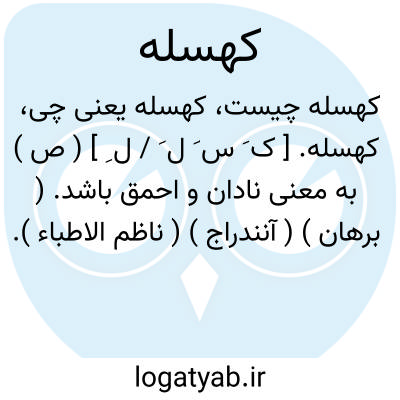 کهسله. [ ک َ س َ ل َ / ل ِ ] ( ص ) به معنی نادان و احمق باشد. ( برهان ) ( آنندراج ) ( ناظم الاطباء ). مقایسه شود با گیلکی کوسخول ( ابله، احمق )، بنابراین کهسله = کهسل اصح است. ( حاشیه برهان چ معین ).