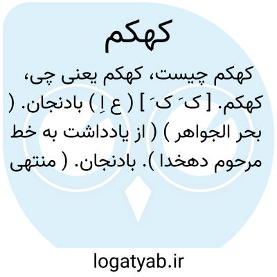 کهکم. [ ک َ ک َ ] ( ع اِ ) بادنجان. ( بحر الجواهر ) ( از یادداشت به خط مرحوم دهخدا ). بادنجان. ( منتهی الارب ) ( آنندراج ) ( ناظم الاطباء ) ( از اقرب الموارد ). کهکب. ( از یادداشت به خط مرحوم دهخدا ). رجوع به کهکب شود. || ( ص ) پیر سالخورده. ( منتهی الارب ) ( آنندراج ) ( ناظم الاطباء ) ( از اقرب الموارد ). || مرد بیمناک، و کهکامة مانند آن است.( از منتهی الارب ) ( از آنندراج ) ( از اقرب الموارد ).