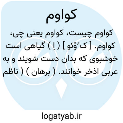 کواوم. [ ک ُوْئو ] ( اِ ) گیاهی است خوشبوی که بدان دست شویند و به عربی اذخر خوانند. ( برهان ) ( ناظم الاطباء ). ظاهراً مصحف کوم است. در فهرست مخزن الادویه کوادم بهمین معنی و در رشیدی کوام آمده. ( از حاشیه برهان چ معین ). و رجوع به کوام شود.