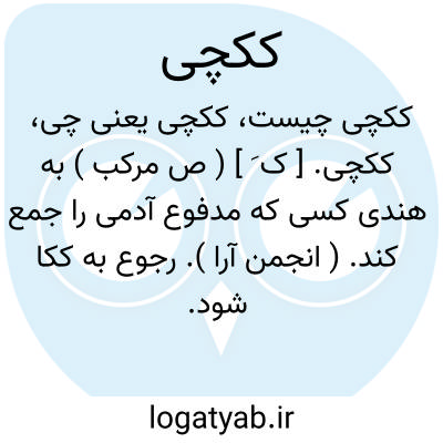 لغت نامه دهخدا ککچی. [ ک َ ] ( ص مرکب ) به هندی کسی که مدفوع آدمی را جمع کند. ( انجمن آرا ). رجوع به ککا شود.