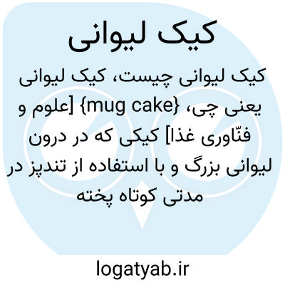 {mug cake} [علوم و فنّاوری غذا] کیکی که در درون لیوانی بزرگ و با استفاده از تندپز در مدتی کوتاه پخته می شود