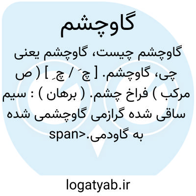 ۱ - آنکه دارای چشمی گشاده بود فراخ چشم: گاو چشمی چو شیر آشفته شب نیاسوده روز ناخفته. ( نظامی ) ۲ - قسمی بابونه است که آنرا بابون. زرد گویند: زبس کش گاو چشم و پیل گوش است چمن چون کلب. فروش است. ( کلیله. مصحح مینوی ) توضیح عموم این گلها بنظر مردم شبیه به چشم آمده است و بنامهایی مثل چشم گاو و چشم گربه و چشم بز و چشم آهو و در عربی عین الثور و عین البقرو عین التیس خوانده اند و غالبا در باب جنس و نوع آنها اشتباه و همه را بیکدیگر خلط کرده اند. در کتاب الابنیه گوید بهار را عین البقر خوانند... اسپرمست که اقحوان خوانندش... و نیز بستان افروز جنسی است ازو. در قانون ابن سینا و کتاب الفلاحه و مفردات ابن البیطار بهار را با اقحوان زرد و عرار و بابونج اصفر یکی گفته اند با گلبرگهای زرد و گلهای لوله ای سرخ و در وسط ( شبیه به شب بو و همیشه بهار ) با برگهای پهن تر و ضخیمتر از برگهای بابونج و این وصف با نوعی از گل داودی نیز مطابق می آید