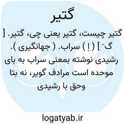 گتیر. [ گ َ ] ( اِ ) سراب. ( جهانگیری ). رشیدی نوشته بمعنی سراب به بای موحده است مرادف گویر، نه بتا وحق با رشیدی است. حکیم فرزدق گفته است: