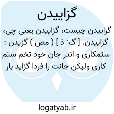 ( مصدر ) ( گزایید گزا خواهد گزایید بگزای گزاینده گزایانگزاییدهگزایش ) ۱ - گزیدن: آن کس که زپشت سعد سلمان آید گر زهر شود ملک تر نگزاید. ( مسعود سعد ) ۲ - زیان رساندن: و اگر ( شراب ) در فصل خزان پیوسته خورده آید کمتر گزاید لابل که سودمند بود.