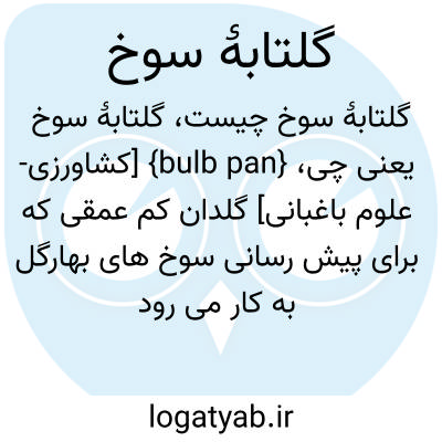 فرهنگستان زبان و ادب {bulb pan} [کشاورزی- علوم باغبانی] گلدان کم عمقی که برای پیش رسانی سوخ های بهارگل به کار می رود متـ. گلتابۀ پیاز