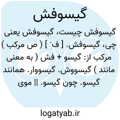 گیسوفش. [ ف َ ] ( ص مرکب ) مرکب از: گیسو + فش ( به معنی مانند ) گیسووش. گیسووار. همانند گیسو. چون گیسو. || موی گردن و کاکلی اسب که همچون گیسو باشد. دارای فشی چو گیسو و فش، موی کاکل اسب است. ( از برهان ذیل کلمه فش ) و کنایه از اسبی که موی کاکل بلند دارد: