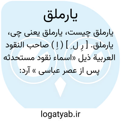 یارملق. [ رِ ل ِ ] ( اِ ) صاحب النقود العربیة ذیل «اسماء نقود مستحدثه پس از عصر عباسی » آرد: یرملق [ ی َ ِر ِل ] سلیمی و بعضی آن را یارملق نویسند اصل آن از ترکی «یارِم » به معنی نیم است و رویهمرفته معنای آن «این نیم » یا «این نیم قرش » و امثال آن است. یارملق سکه مصری از نقره بوده و پیش از دوران ترکها رواج داشته است. ( النقود العربیة ص 188 و نیز ص 86 ).