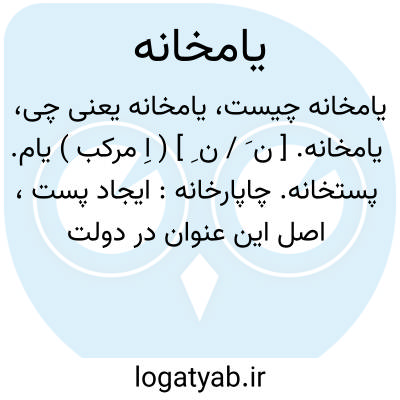 یامخانه. [ ن َ / ن ِ ] ( اِ مرکب ) یام. پستخانه. چاپارخانه: ایجاد پست، اصل این عنوان در دولت قاجار از روی تخمه قدیم یامخانه و چاپار همی بود. ( المآثر و الاَّثار ص 95 ).