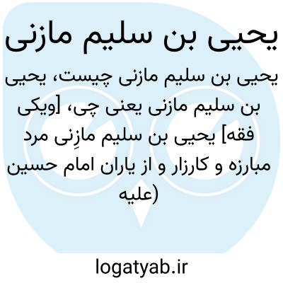 [ویکی فقه] یحیی بن سلیم مازِنی مرد مبارزه و کارزار و از یاران امام حسین (علیه السلام) بودند. و در کربلا به شهادت رسید.