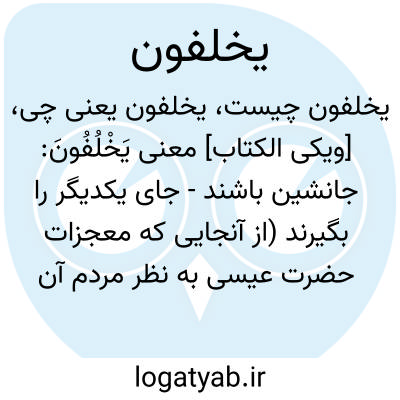 [ویکی الکتاب] معنی یَخْلُفُونَ: جانشین باشند - جای یکدیگر را بگیرند (از آنجایی که معجزات حضرت عیسی به نظر مردم آن زمان تنها درتوان ملائکه بود در آیه "وَلَوْ نَشَاءُ لَجَعَلْنَا مِنکُم مَّلَائِکَةً فِی ﭐلْأَرْضِ یَخْلُفُونَ "منظور این است که از میان شما اگر بخواهیم به بعضی توانایی م...