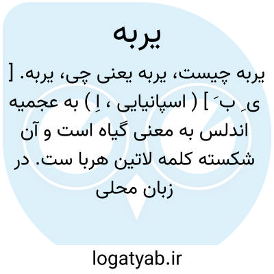 یربه. [ ی ِ ب َ ] ( اسپانیایی، اِ ) به عجمیه اندلس به معنی گیاه است و آن شکسته کلمه لاتین هربا ست. در زبان محلی اسپانیااین کلمه جزء اول بعضی اسامی گیاهان است مثل یربه شانه و غیره، و به معنی گیاه است. ( یادداشت مؤلف ).
