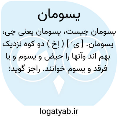 یسومان. [ ی َ ] ( اِخ ) دو کوه نزدیک بهم اند وآنها را حیض و یسوم و یا فرقد و یسوم خوانند. راجز گوید: یا ناق سیری قد بدا یسومان. ( از تاج العروس ).