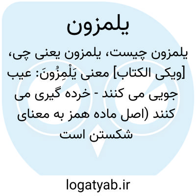 [ویکی الکتاب] معنی یَلْمِزُونَ: عیب جویی می کنند - خرده گیری می کنند (اصل ماده همز به معنای شکستن است، و کلمه لمز نیز به معنای عیب است پس همزه و لمزه هر دو به یک معنا است. ولی بعضی گفتهاند: بین آن دو فرقی هست، و آن این است همزه به آن کسی گویند که دنبال سر مردم عیب میگوید و خرده...