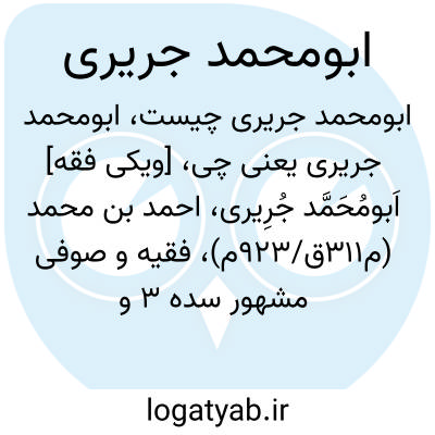 [ویکی فقه] اَبومُحَمَّد جُرِیری، احمد بن محمد (م۳۱۱ق/۹۲۳م)، فقیه و صوفی مشهور سده ۳ و اوایل سده ۴ق در بغداد می باشد.