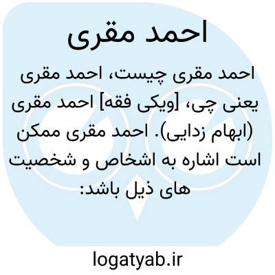 [ویکی فقه] احمد مقری (ابهام زدایی). احمد مقری ممکن است اشاره به اشخاص و شخصیت های ذیل باشد: • احمد بن محمد فیومی مقری، احمد بن محمد بن علی الفیومی المقری، از لغویون مصر• احمد بن محمد مقری تلمسانی، شهاب الدین ابوالعباس احمد بن محمد، المقری التلمسانی نگارنده کتاب نفح الطیب من غصن الأندلس الرطیب