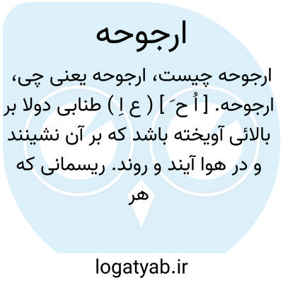 ارجوحه. [ اُ ح َ ] ( ع اِ ) طنابی دولا بر بالائی آویخته باشد که بر آن نشینند و در هوا آیند و روند. ریسمانی که هر دو سر آن بدرختی یا جائی بندند و کودکان در آن نشینند و ازین طرف بدان طرف روند. ریسمانی است که از جانبی آویزند و زنان و کودکان و دختران بر آن نشسته در هوا آیند و روند. ( منتهی الارب ). تاب. کاز. بانوج. بازپیچ. بادپیچ. ( آنندراج ). رجاحة. مَرجوحه. جان بازی. ( آنندراج ). وازینج. ( خلاص ). نرموره. بژموره. لوکانی. غناوَه. اورک و بزبان گیل هلاچین گویند. ج، اراجح ( زمخشری )، اراجیح. ( مهذب الاسماء ). رجوع به وازینج شود. || آلاکلنگ. الاکلنگ. || مهد. ( آنندراج ). گهواره. گاهواره.