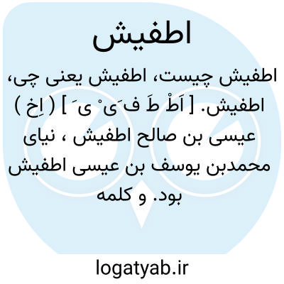 اطفیش. [ اَطْ طَ ف َی ْ ی َ ] ( اِخ ) عیسی بن صالح اطفیش، نیای محمدبن یوسف بن عیسی اطفیش بود. و کلمه اطفیش لفظی بربری است مرکب مزجی از سه کلمه «اَطَّف » بمعنی بگیر و «ایّا» بمعنی بیا و «اش » بمعنی بخور که مجموع چنین است یعنی «بگیربیابخور» و وی را از اینرو بدین نام خواندند که یکی از دوستانش را به خوردن طعام بازخواند. ( از اعلام زرکلی ج 3 ص 1008 ).