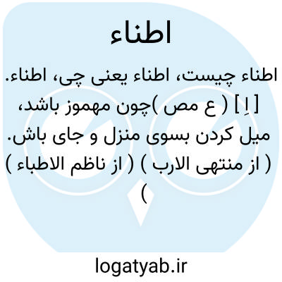 اطناء. [ اِ ] ( ع مص )چون مهموز باشد، میل کردن بسوی منزل و جای باش. ( از منتهی الارب ) ( از ناظم الاطباء ) ( آنندراج ) ( از متن اللغة ) ( از اقرب الموارد ). || رفتن بسوی حوض پس نوشیدن آب. ( از منتهی الارب ) ( از اقرب الموارد ) ( ازمتن اللغة ). || رفتن بسوی فرش پس خفتن بر آن از جهت سستی و کسالت. ( از منتهی الارب ) ( از ناظم الاطباء ) ( از اقرب الموارد ) ( از متن اللغة ). میل کردن کسی بطرف فرش و از جهت سستی خوابیدن. ( از ناظم الاطباء ) ( از منتهی الارب ). گراییدن کسی به طنو یعنی بساط و خوابیدن بر آن از کسالت. ( از متن اللغة ) ( از منتهی الارب ). || هذه حیة لاتطنی ٔ؛ یعنی این ماری است که جان بدر نبرد گزیده شده آن. ( ناظم الاطباء ) ( از اقرب الموارد ) ( از متن اللغة ). حیة لاتطنی؛ یعنی باقی نمی ماند گزیده آن. ( منتهی الارب ). باقی نماندن لدیغ مار. در مهموز هم این معنی آمده است. ( از اقرب الموارد ). || در جای کشتنگاه زخم رسانیدن فلان را. ( از منتهی الارب ) ( از ناظم الاطباء ). || اصابت کردن به شوای کسی، یعنی در جز کشتنگاه کسی اصابت کردن. به جز مقتل کسی اصابت کردن. ( از اقرب الموارد ). || اطناء کسی؛ خواهش کردن وی بطرف تهمت و شک. ( از منتهی الارب ) ( از ناظم الاطباء ). گراییدن کسی به تهمت و ریبت. ( از اقرب الموارد ). میل کردن به ریبت. ( از متن اللغة ). || درگذشتن در نافرمانی و تباهی. ( منتهی الارب ). فرورفتن در فجور و ادامه دادن آن. ( از اقرب الموارد ). اطناء کسی در فجور خویش؛ فرورفتن وی در آن.( از متن اللغة ). || برچفسیدن سپرز و شش به پهلو از تشنگی. ( منتهی الارب ). چسبیدن طحال و ریه کسی به دنده های جانب چپ وی. ( از اقرب الموارد ). || خریدن. ( منتهی الارب ). || خریدن نخل کسی را. ( از متن اللغة ). || فروختن. ( منتهی الارب ). || درخت یا ثمر نخل را فروختن. ( از اقرب الموارد ). نخل خود را فروختن. ( از متن اللغة ). از اضداد است. ( از متن اللغة ) ( منتهی الارب ). || مبتلا شدن شتر به عظم طحال. ( از متن اللغة ).