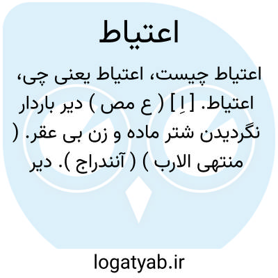اعتیاط. [ اِ ] ( ع مص ) دیر باردار نگردیدن شتر ماده و زن بی عقر. ( منتهی الارب ) ( آنندراج ). دیر باردار نگردیدن شتر ماده و زن بی آنکه نازاباشند. ( ناظم الاطباء ). سالها آبستن نگردیدن بدون عقر. و منه: «اعتاطت الاذهان اللواقح؛ اذا لم تنتج ». ( ازمتن اللغة ). دیری باردار نگردیدن ناقه و زن بی عقر. ( یادداشت بخط مؤلف ). || باردار ناشدن ناقه با آن که گشن داده شود آن را و معتاط نعت است از آن. ( منتهی الارب ) ( آنندراج ) ( از ناظم الاطباء ). مثل عِیاط. ( المصادر زوزنی ). اِعتیاص. ( متن اللغة ). || اشتر را بی علتی بکشتن. ( تاج المصادر بیهقی ).