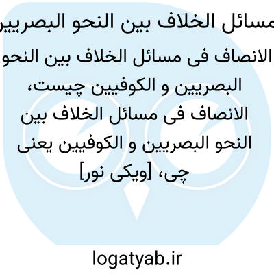 [ویکی نور] الإنصاف فی مسائل الخلاف بین النحویین: البصریین و الکوفیین، تألیف عبدالرحمن بن محمد بن ابی سعید بن انباری، معروف به ابن انباری، لغوی و نحوی معروف عرب است. این اثر حاوی مشهورترین مسائل اختلافی بین نحویون بصره و کوفه به ترتیب مسائل اختلافی بین شافعی و ابوحنیفه است.