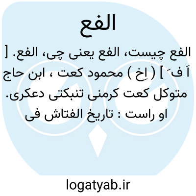 الفع. [ اَ ف َ ] ( اِخ ) محمود کعت، ابن حاج متوکل کعت کرمنی تنبکتی دعکری. او راست: تاریخ الفتاش فی اخبار البلدان والجیوش و اکابرالناس. و یکی از احفاد او بدین کتاب ذیلی نوشته است. تاریخ الفتاش بکوشش استاد هوداس و داماد او موریس و لافرس در پاریس به سال 1913 م. چاپ شده است. ( از معجم المطبوعات ج 1 ستون 464 ).