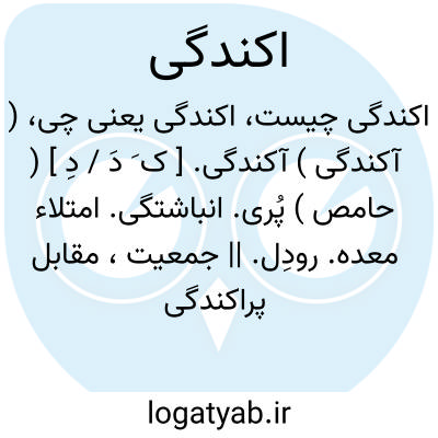 ( آکندگی ) ۱ - حالت و کیفیت آکنده عمل آکنده. ۲ - پری معده امتلائ معده رودل. ۳ - جمعیت مقابل پراکندگی تفرقه. ۴ - گوشتناکی پرگوشتی: آکندگی بازو.