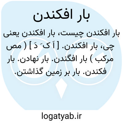 بار افکندن. [ اَ ک َ دَ ] ( مص مرکب ) بار افگندن. بار نهادن. بار فکندن. بار بر زمین گذاشتن. انداختن بار. افکندن بار: یک روز آنجا بار افکند [ امیرسبکتکین ]. ( تاریخ بیهقی چ ادیب ص 198 ).