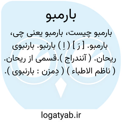 بارمبو. [ رَ ] ( اِ ) بارنبو. بارنبوی ریحان. ( آنندراج ).قسمی از ریحان. ( ناظم الاطباء ) ( دِمزن: بارنبوی ). بادرنگبو( ؟ ) ( دِمزن ). رجوع به بارنبو و بارنبوی شود.