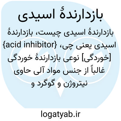 {acid inhibitor} [خوردگی] نوعی بازدارندۀ خوردگی غالباً از جنس مواد آلی حاوی نیتروژن و گوگرد و دارای بار قطبی که جذب سطح فلز می شود و از حملۀ اسید به سطح عریان فلز در هنگام پوسته زدایی (descaling ) محافظت می کند